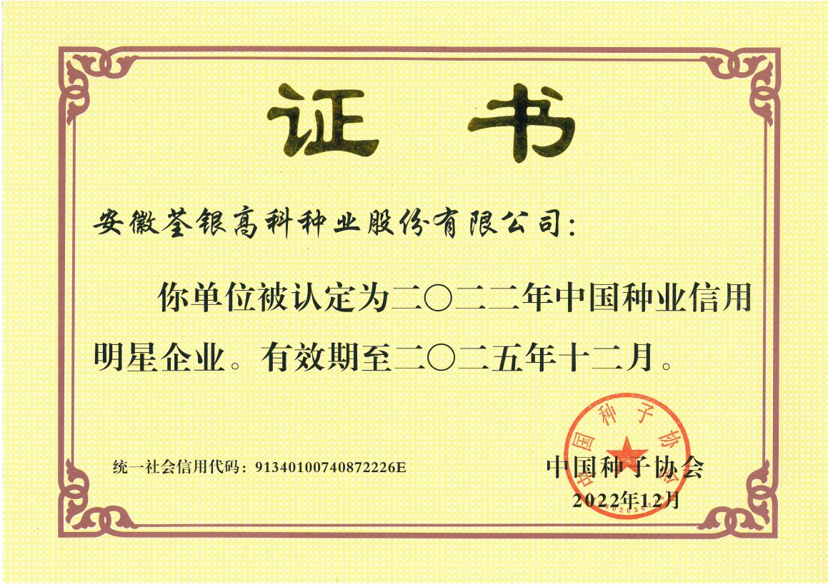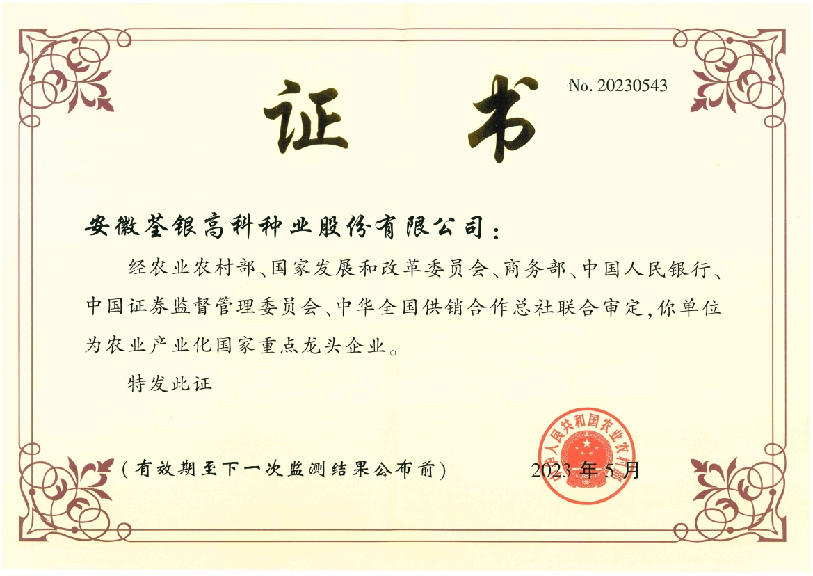 安徽荃銀高科種業(yè)股份有限公司是一家“以種業(yè)為核心、農(nóng)業(yè)服務為延伸、探索和創(chuàng)新農(nóng)業(yè)多元化發(fā)展”的現(xiàn)代高科技種業(yè)上市公司,證券代碼:300087。公司注冊資金9.47億元,系“中國種業(yè)領軍企業(yè)、農(nóng)業(yè)產(chǎn)業(yè)化國家重點龍頭企業(yè)、國家高新技術企業(yè)、農(nóng)業(yè)部首批農(nóng)作物種子育繁推一體化企業(yè)、中國種業(yè)信用明星企業(yè)"。在國內控股子公司20多家,在國外設立分支機構4家,良種銷售至全國20多個?。ㄊ?、區(qū)),出口覆蓋20多個國家與地區(qū),種業(yè)綜合實力、雜交水稻研發(fā)、推廣及海外業(yè)務規(guī)模均居全國種子企業(yè)前2位。